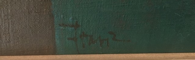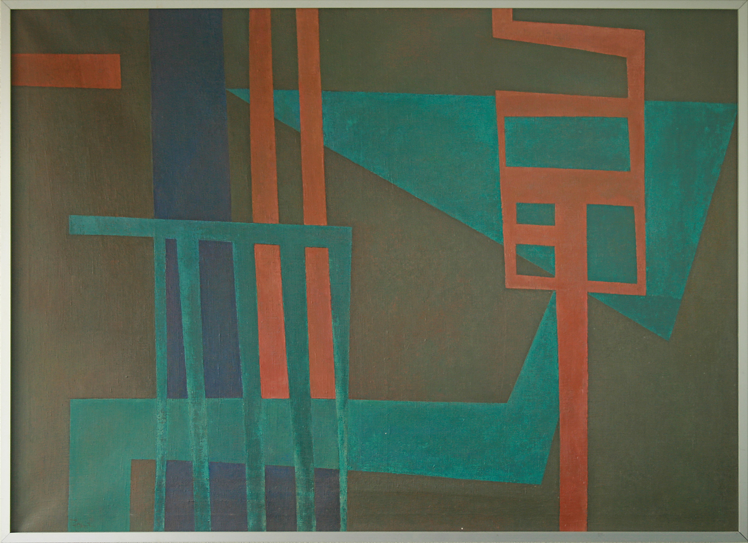 Een groot schilderij van Piet Franz uit zijn latere abstracte periode. De kenmerken van zijn schilderstijl komen mooi in dit werk samen.