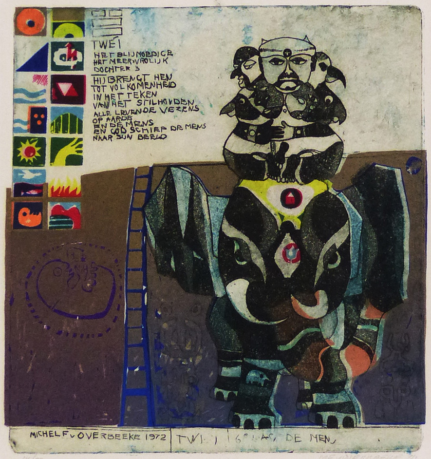 In 1972 bracht Michel van Overbeeke een houten cassette met negen etsen met aquatint en litho uit: ‘I Tjing’. In de eikenhouten cassette zat een glasplaat zodat je regelmatig een andere ets achter het glas kon plaatsen: een wisselende tentoonstelling, dus.